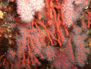 une large variété de coraux : le corail rouge, le plus connu et emblématique, est une espèce encore commercialisée pour les bijoux ou objets d’art mais on peut observer aussi des coraux jaunes, roses, blancs ou noirs. En Méditerranée, généralement dépourvus de symbiotes et craignant la lumière, les coraux se refugient en profondeur et ne sont observables qu’en scaphandre autonome ou en submersible.